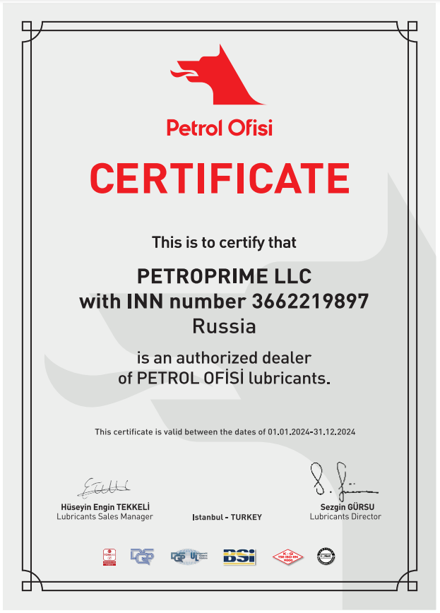 Сертификат дилера Petrol Ofisi
